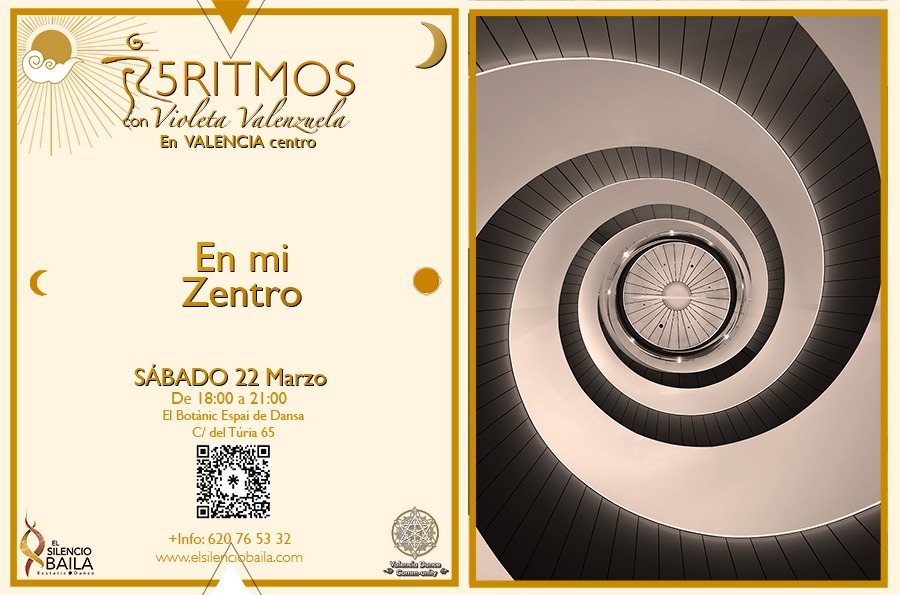 ย ๐Ÿโ„๐•š๐•ฅ๐•ž๐• ๐•ค ๐™˜๐™ค๐™ฃ ๐™‘๐™ž๐™ค๐™ก๐™š๐™ฉ๐™–ย ย  ๐™€๐™ฃ ๐™‘๐˜ผ๐™‡๐™€๐™‰๐˜พ๐™„๐˜ผ ๐™€๐™ฃ ๐™ข๐™ž ๐™•๐™š๐™ฃ๐™ฉ๐™ง๐™ค . ๐™Ž๐™–ฬ๐™—๐™–๐™™๐™ค ๐Ÿฎ๐Ÿฎ ๐™ˆ๐™–๐™ง๐™ฏ๐™ค. ๐˜ฟ๐™š ๐Ÿญ๐Ÿด:๐Ÿฌ๐Ÿฌ ๐™– ๐Ÿฎ๐Ÿญ:๐Ÿฌ๐Ÿฌ. Botร nic Espai de Dansa. c/del Turia 65 (Valencia ) . แด€แด˜แดส€แด›แด€แด„ษชแดฬษด : 30 โ‚ฌ/ taller . ษชษด๊œฑแด„ส€ษชแด˜แด„ษชแดษดแด‡๊œฑ: https://forms.gle/Da7cXpn6TyPp8d2B8 . แด„แดษดแด›แด€แด„แด›แด: 620 76 53 32 . Creatividadย ย Conexiรณnย ย Comunidadย  . En este taller tomaremos conciencia del Zentro desde donde surge el movimiento espontรกneo y natural....